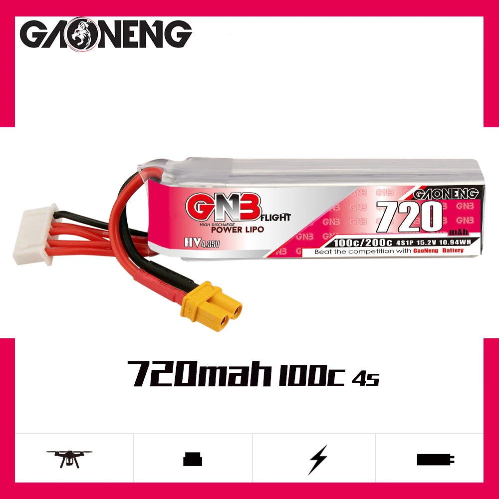 - 1x GNB 720mAh 15.2V 4S 100C HV Lipo Battery – XT-30