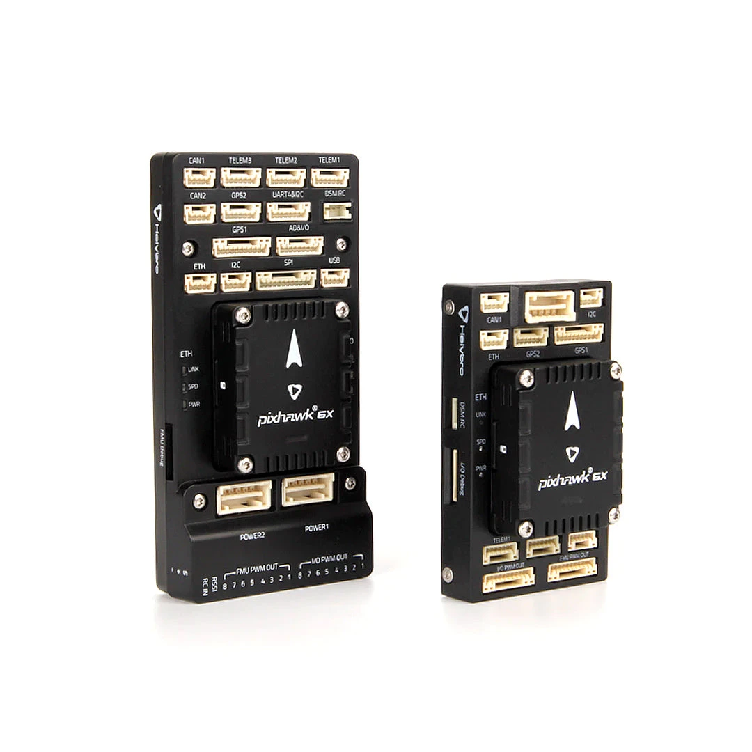 The Pixhawk® 6X is perfect for developers at corporate research labs, startups, academics (research, professors, students), and commercial application. Holybro offers the Pixhawk Baseboard and the Pixhawk Mini-Baseboard, each with different form factor and interfaces.