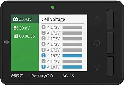 The ISDT BG-8S is a multipurpose battery checker. It comes lots of great features to help check your batteries, receiver signals and even has a USB output that allows you to charge your phone or other devices. The display that can easily be seen in sunlight and has an easy to use menu system to show all functions and data.