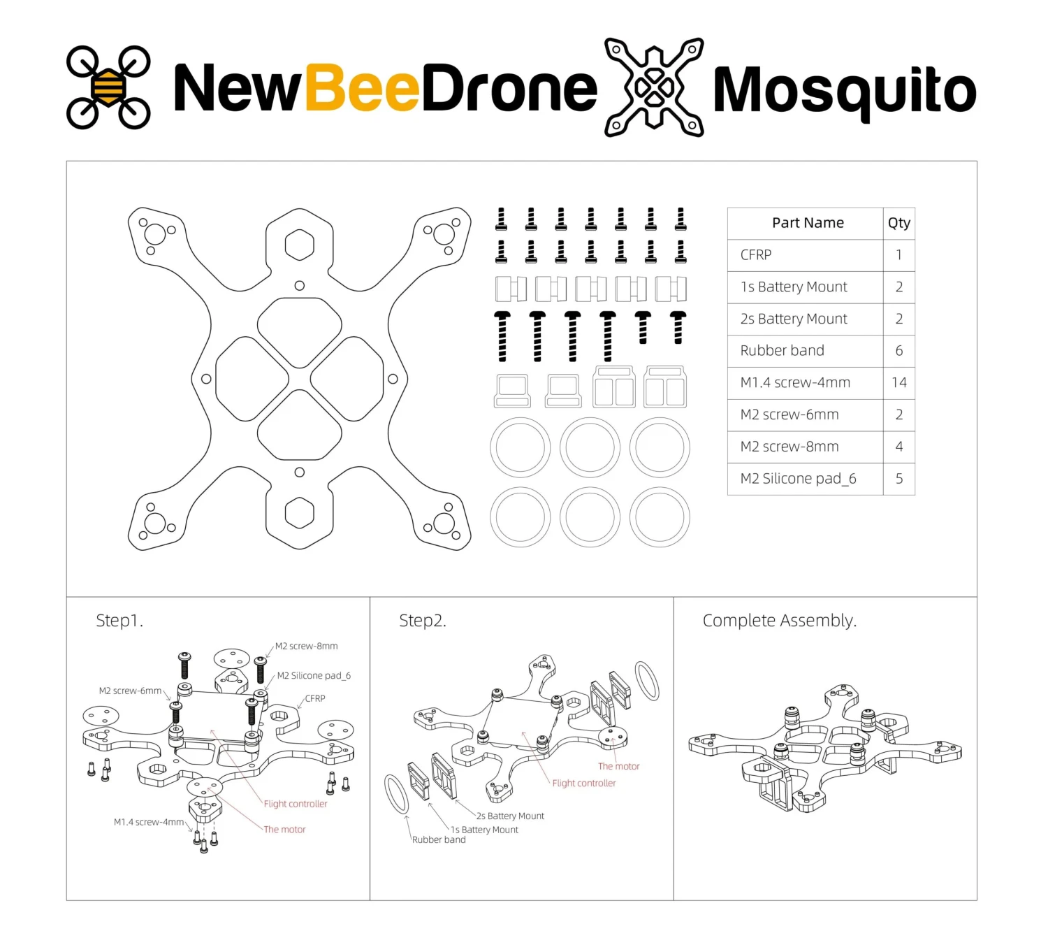 This frame was designed tested and tuned by DZ to be the ultimate 1s outdoor proximity flyer! It uses all of the same components that you already use for your brushless BnF NewBeeDrone whoops, so just install the AIO and motors into the mosquito (soldering the motor wires is required), swap the props to the 40mm azi and enjoy what DZ calls that “good good” flight.