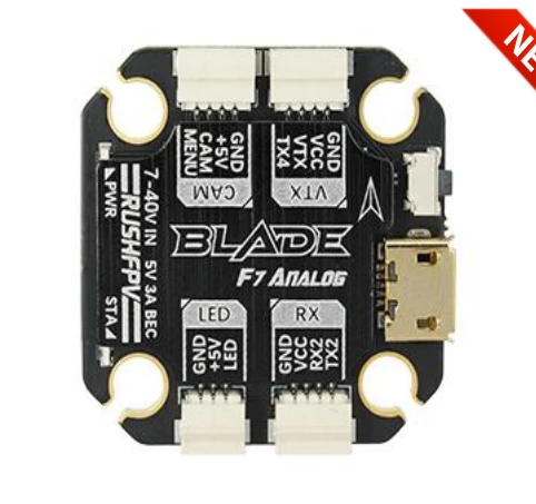 The RushFPV Rush Blade F722 FC for Analog has connectors installed specifically to make installing analog video systems a PNP (Plug and Play) process.